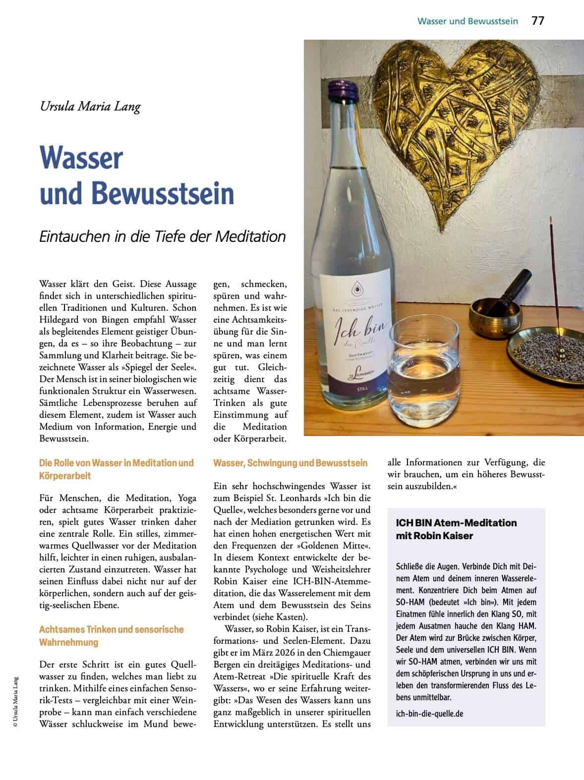 Artikel „Wasser und Bewusstsein – Eintauchen in die Tiefe der Meditation“ im Magazin Tattva Viveka vom Windpferd Verlag